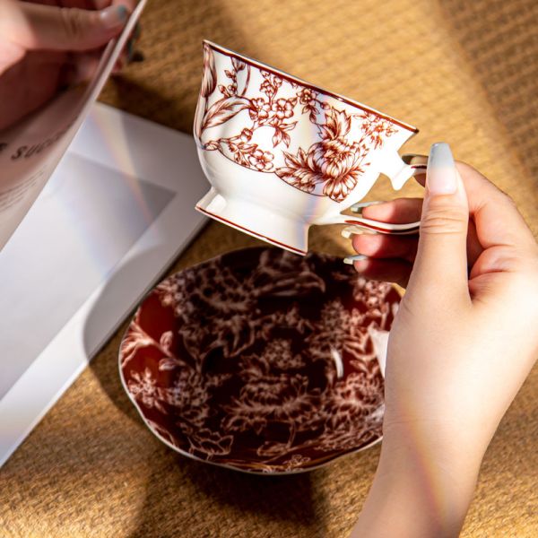 Elegant Ceramic Coffee Mug And Saucer Set Light Luxury Gold Line Design For Drinkware Images |